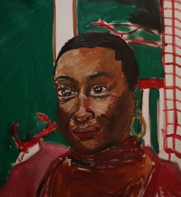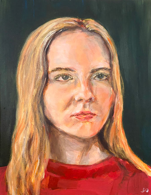 The works are as diverse as their creators. Some come from gifted young students of curator and artist Emily Waters, whose talent and bold experimentation shine through. Others are by more seasoned voices in the portraiture tradition, such as Torild Stray, known for her expressive, intuitive style. Together, they form a multifaceted exploration of what it means to see and be seen.
