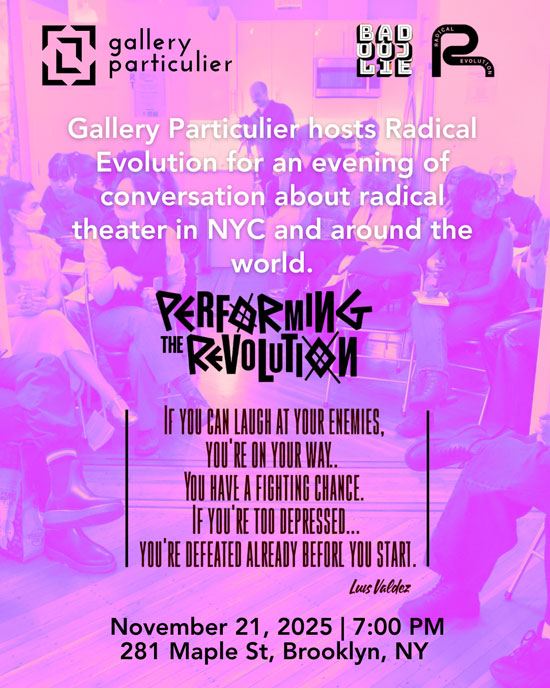 Gallery Particulier will host an event with the theater company Radical Evolution