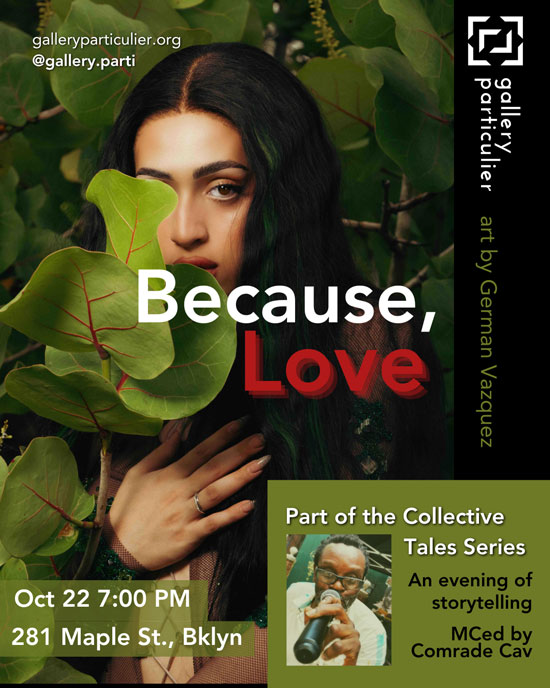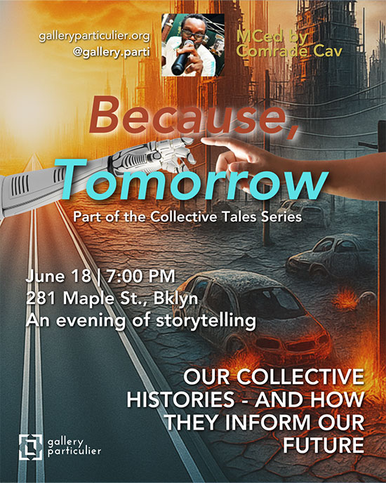 On Tuesday, September 24 at 7pm, Gallery Particulier will host a special edition of our storytelling series, Collective Tales, under the theme “Because, Justice.”